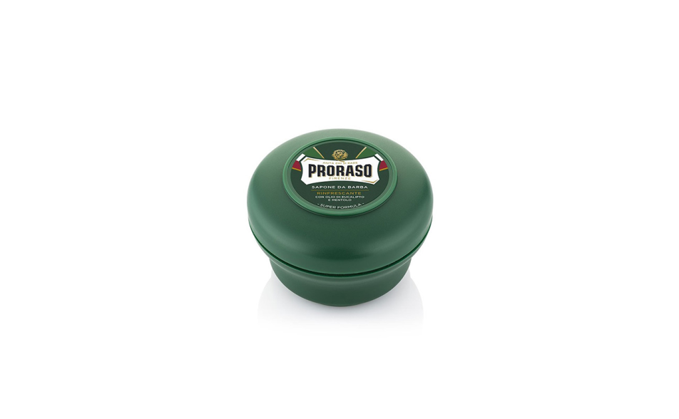 Proraso Sapone da barba in ciotola con eucalipto, mentolo e glicerina, protegge anche le pelli più sensibili, idratandole e lasciando un piacevole senso di freschezza.
