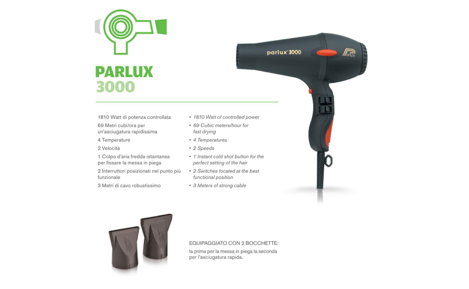 Parlux Phon 3000 è un asciugacapelli professionale che unisce la praticità d’uso alla potenza e qualità del prodotto, facilitando così il lavoro dei professionisti ed aiutandoli nell’esaltare le loro abilità.
