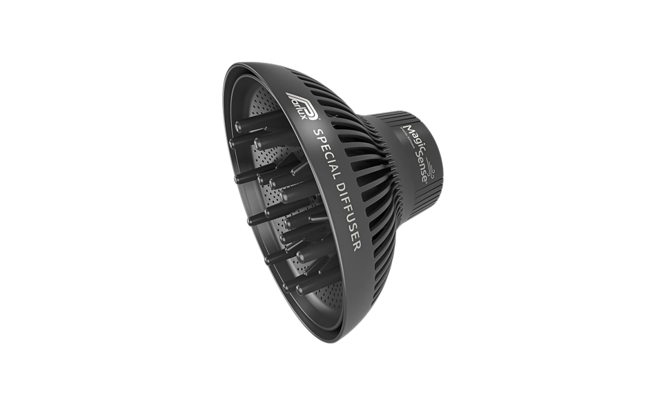 Il tocco magico è assicurato dal suo stesso design estremamente innovativo. La sua dimensione ottimale e la distribuzione dei fori permettono di creare, infatti, una perfetta combinazione tra temperatura e quantità di aria emessa assicurando asciugature naturali in tempi brevi. Al suo interno, infatti, incorpora il sistema DFO (Dynamic Flow Optimizer) che, miscelando il flusso d’aria con la giusta temperatura, assicura risultati da sogno. Il diffusore MagicSense® permette così di sconfiggere il tanto temuto effetto crespo garantendo un’asciugatura rapida delle radici del capello senza seccarne però le punte.